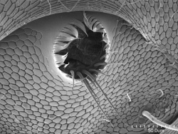 Die von einem Borstenkranz umgebene Austrittsöffnung am After der Formicinae, aus der die Ameisensäure verspritzt wird. (engl. acidopore)