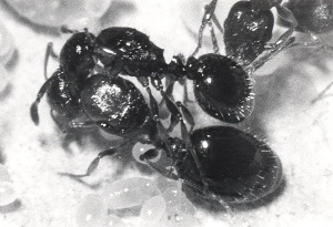 - Winter, U., Buschinger, A. 1983: The reproductive biology of a slavemaker ant, Epimyrma ravouxi, and a degenerate slavemaker E. kraussei (Hymenoptera: Formicidae). Entomol. Gener. 9, 1-15.